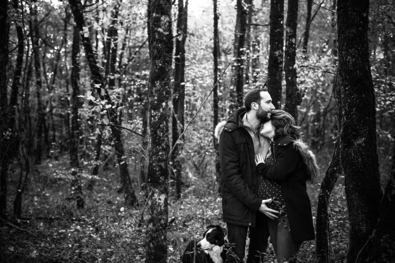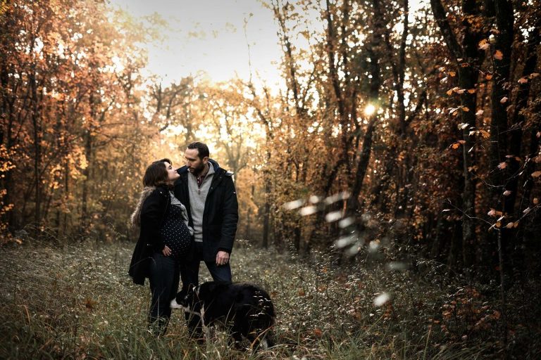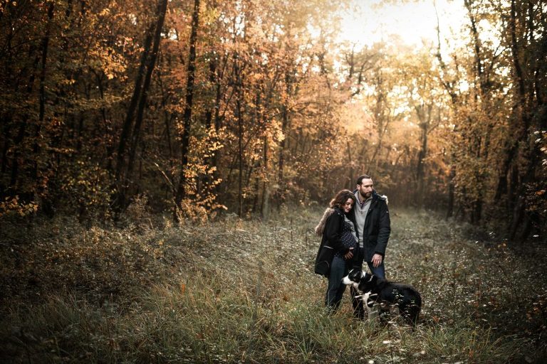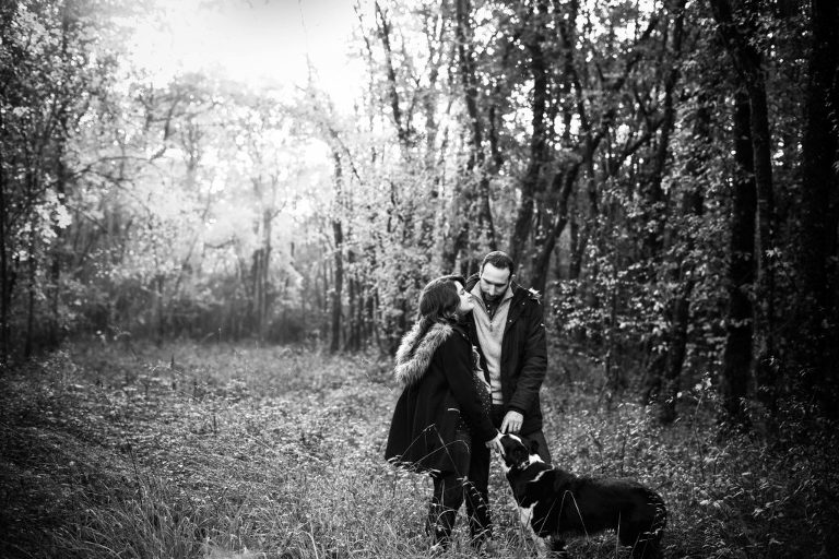 Après quelques échanges, Aurélie me demande s’il est possible de faire les photos dans la campagne près de Ruffec, en Charente, et s’il est possible d’y emmener leur chien. Moi qui adore les chemins de balades perdus en pleine nature, je suis ravie!!
