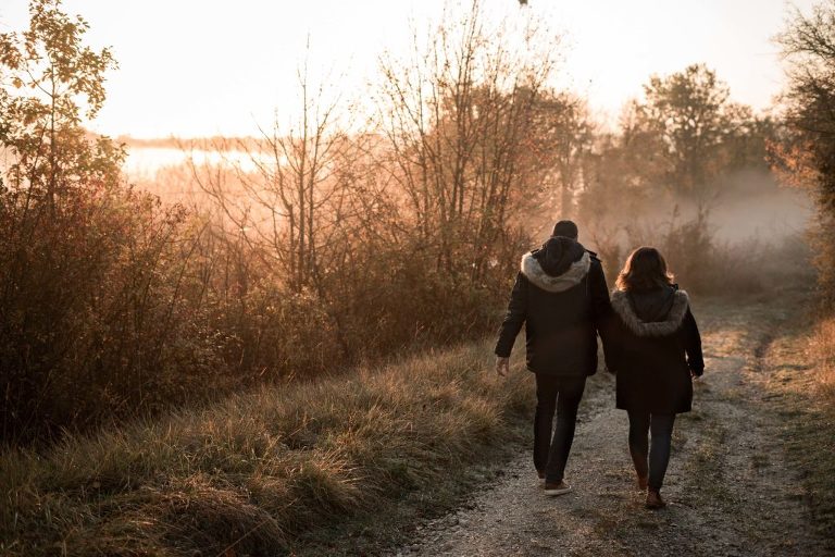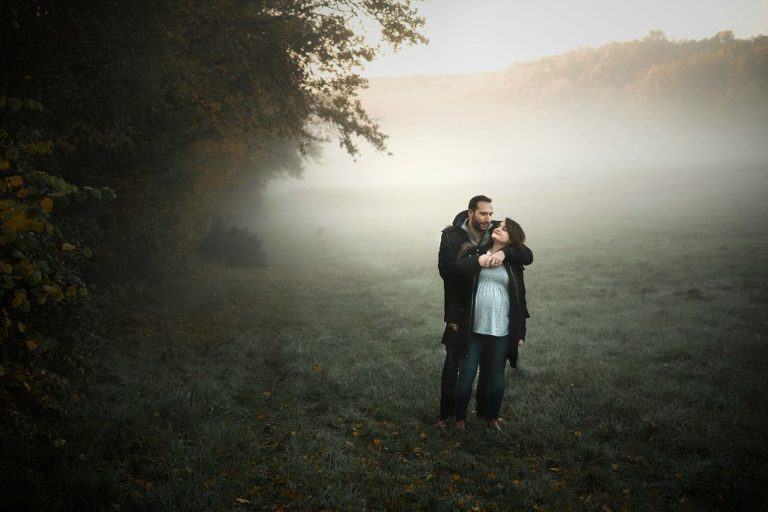 On se retrouve fin novembre, au petit matin. Il fait bien frais mais nous avons la chance de profiter des dernières couleurs de l’automne! Nous arrivons sur les lieux qu’ils ont choisis, en hauteur. La lumière du soleil qui se lève, la brume sur les champs et pâtures, la nature tout autour de nous en font un endroit incroyable!