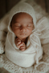 Pour réussir votre séance photo naissance, le moment parfait se situe généralement entre le 5ème et 15ème jour de vie. C’est durant cette période que bébé dort le plus profondément et retrouve naturellement ses positions de nouveau-né, nous permettant de travailler dans une atmosphère sereine.